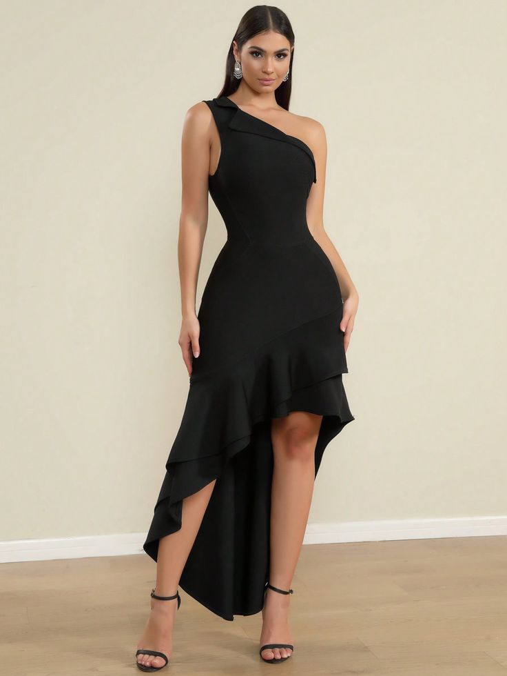 Defy convention in our Asymmetry Allure Cocktail Dress, a midi masterpiece in fluid satin with one long sleeve contrasting a bare opposite arm, dipping into an uneven hem—short and flirty on one side, flowing to ankle on the other. A draped cowl neck adds drama, cinched with a thin belt. Effortless for gallery openings or festive toasts. In plum satin, teal wave, and gold haze; sizes 0-28.