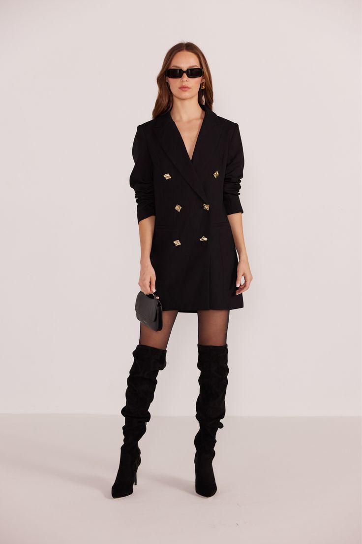 New season slay: our Power Forge Blazer New Dress, a one-piece wonder in stretch wool suiting with sharp notched lapels, nipped waist, and knee-length A-line skirt with kick pleat. Faux front pockets and shoulder pads amp the attitude. Commands boardrooms or cocktail power hours. In forge charcoal, rust iron, and navy steel; sizes 0-28. New Arrival – Tailored Triumph!
